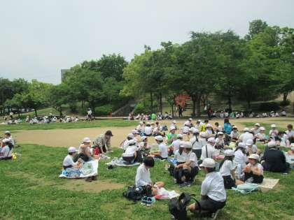 おうちの人が朝早くから作ってくれたお弁当は、とても美味しいですね!!みんな笑顔いっぱい!!食べ終わったら、大繩やドッジビーで遊びました。