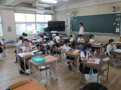 算数科の学習では、テストをしたり、どのような計算式になるか考えたりしました。みんな字をていねいに書いていましたね。正確に計算するためには、ていねいに書くことが大切です。これからも続けましょうね!!