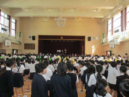 今日の児童集会は、全校遠足で実施したオリエンテーリングの結果発表です。