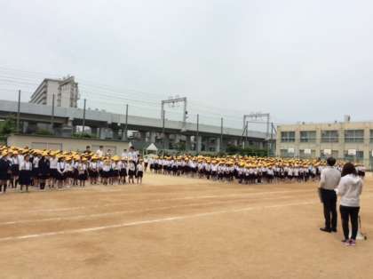 地震の避難訓練を行いました。「おさない・はしらない・しゃべらない・もどらない」のきまりを守って行動していました。とても静かに素早く非難することができていて、校長先生も褒めていました。