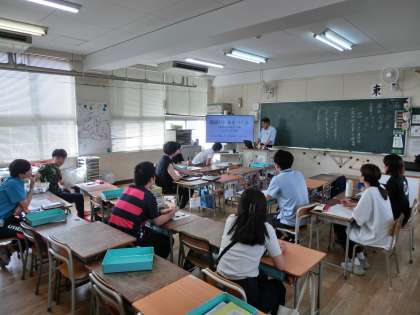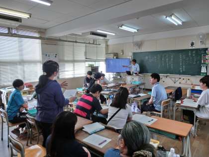 大阪市総合教育センターから講師の先生に来ていただき、先生対象の研修会を実施しました。1年生で学習する説明文「いろいろなふね」を使って、指導法を学びました。