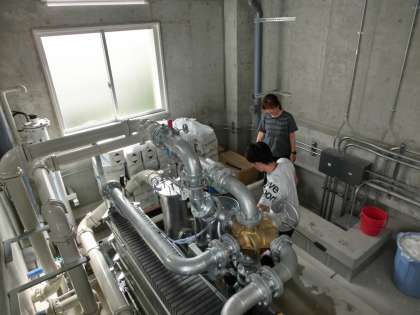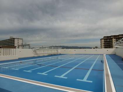 夜間の間に給水し、プールに水が張られました!!とってもきれいです。このきれいな水を保つためにも、毎日先生たちは塩素を投入したり、機械を動かしたりして水質管理をします。今日も朝早くから先生たちが機械を動かしてくれました。