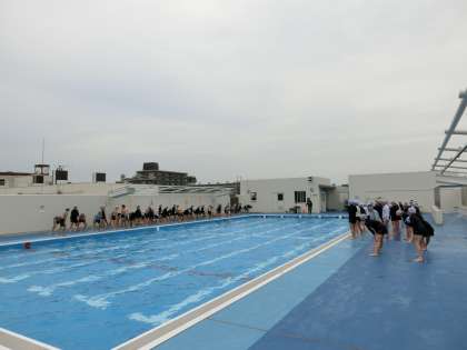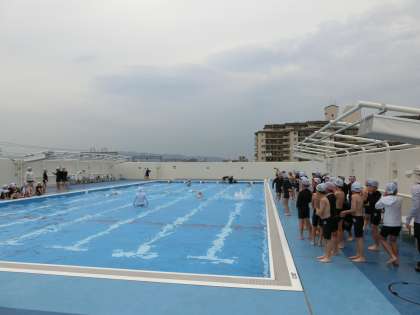 4年生が体育科でプール学習をしました。雲が少し多くなり、午前中よりも少し寒い中での実施となりましたが、新しいプールに入るということもあり喜ぶ児童が多かったです。