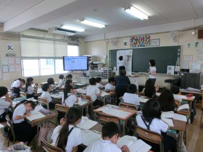 算数科「長いものの長さのはかり方と表し方」の学習をしました。絵地図を見ながら、いろいろな長さをもとめました。また、「1000m=1km」ということも学習しました。