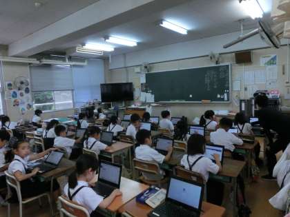 1時間目が始まるまでの朝学習の時間に、子どもたちはタブレットを開いて「心のてんき」を入力したり、「デジタルドリル」をしたりしています。「デジタルドリル」は自分でチャレンジしたい学年や教科・単元等を選ぶことができます。朝一から集中して取り組むことができていますね!!