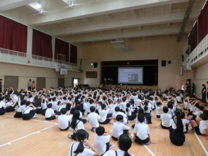 今日の児童集会は講堂で「教室〇×クイズ」を行いました。集会委員がタブレットで作った〇×クイズをみんなで答えました。みなさんは何問正解できましたか?