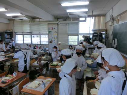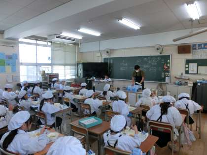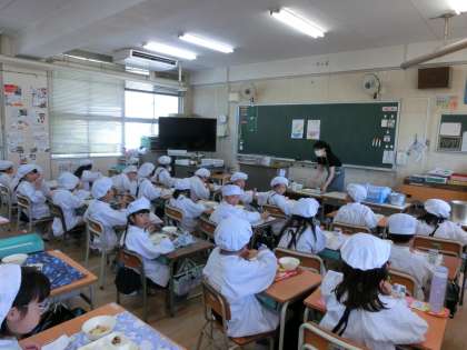 今日の給食は、牛乳、ごはん、豚肉とじゃがいもの煮もの、ひじき豆、ささみと野菜のごまみそ焼きでした。暑い日が続きますが、残食も少なくたくさん食べることができているようです。たくさん食べて暑さに負けない体にしましょうね!!