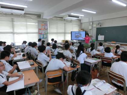 英語科では、C−NETの先生との学習でした。デジタル教科書で世界の人たちの話を聞きました。