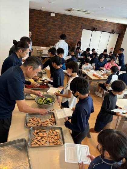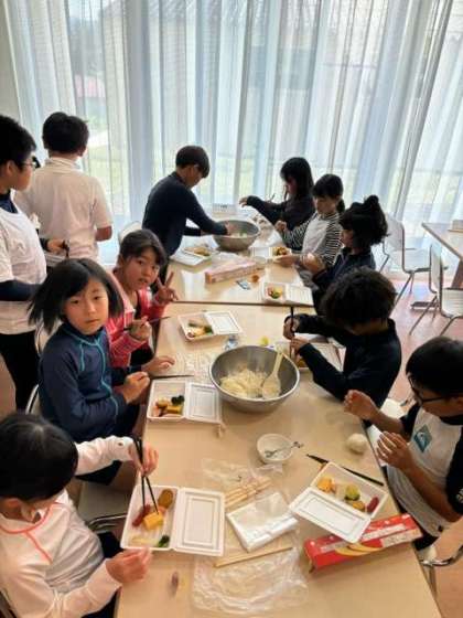 今日の昼食用のお弁当作りです。おにぎりを作る子もいれば、ノリ弁当にする子もいて、人それぞれです。