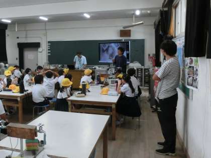 3年生が出前授業をしました。校内を回って自分たちでいろいろな昆虫を探しました。捕まえた昆虫をそのあとみんなで観察し、生態について学びました。昆虫についていろいろと知ることができてよかったですね!!