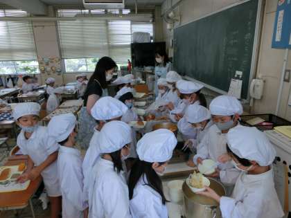 今日から給食が始まりました。今までのように自分たちで運び、配膳し、給食をいただきます。長い夏休み明けでしたが、1年生も忘れることなくスムーズに配膳できましたね!!