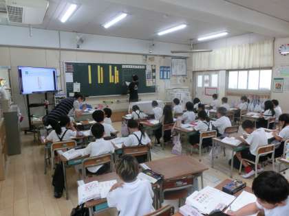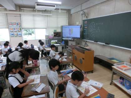1年生が算数科の学習をしました。いろいろな数を10のまとまりを使って考えました。これからだんだんと数が大きくなっていきますが、「10」「100」「1000」などのまとまりをもとに考えるので、この学習はとても大切です。たくさん学習して身につけましょうね!!