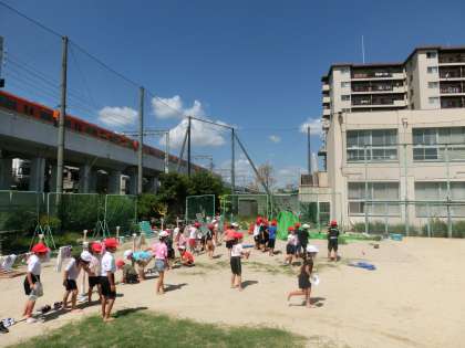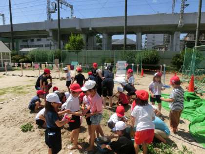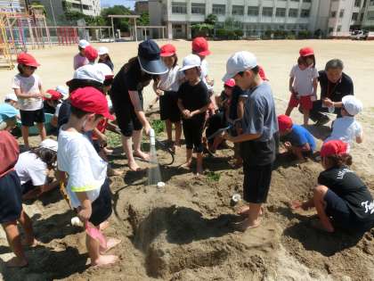 1年生が生活科の学習で「どろ遊び」をしました。裸足になり、砂場を使っていろいろなものを作りました。天気もよかったので、お水がとても気持ち良さそうでしたね!!