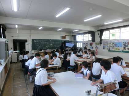 6年生が理科「水よう液の性質」の学習をしました。いろいろな水溶液の性質を調べて、その特徴を知ります。今日は「炭酸水には何が溶けているのか」を実験して調べました。何が溶けていたのかわかりましたか?