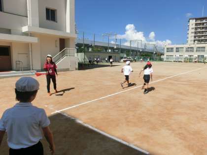 5年生が体育科で50m走をしました。運動会に向けて、タイムを計りました。1学期に計ったときよりも速くなっていましたか?