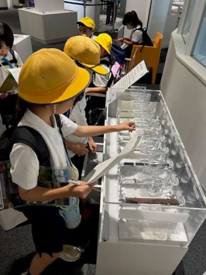 玉が物に当たった時の音の違いを聞く「素材の音の聞きくらべ」
