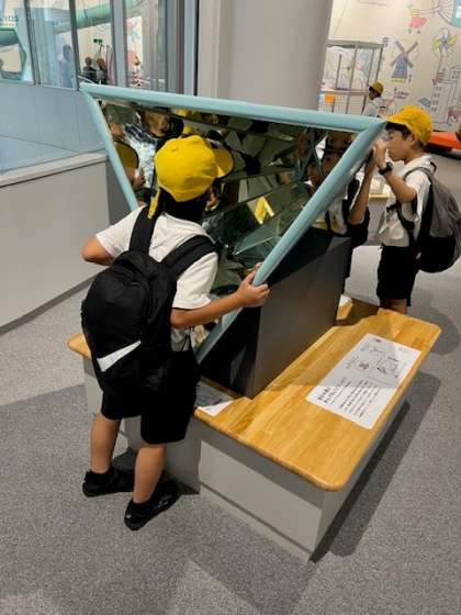 自分たちの顔を鏡に映す「顔でまんげきょう」