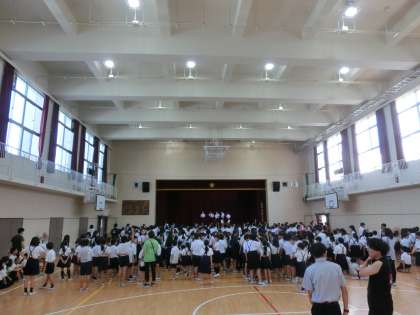 今日のたてわり集会は、「並び替えゲーム」でした。集会委員会の児童が出すさまざまなお題にそって、たてわり班で並び替えします。例えば、「誕生日順」「あいうえお順」等。どうやって並び替えたのか先生たちも知りたかったぐらい、とても早く並び替えることができた班もありました。楽しかったですね!!