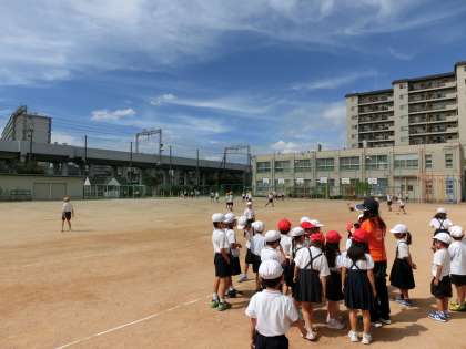 いつもよりずいぶんと涼しく、過ごしやすい気温になりました。1年生はクラスでみんな遊びをして楽しみました。
