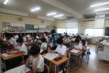 家庭科では、今回学習した単元のまとめのテストをしました。これまで学習したことを忘れずに覚えていましたか?