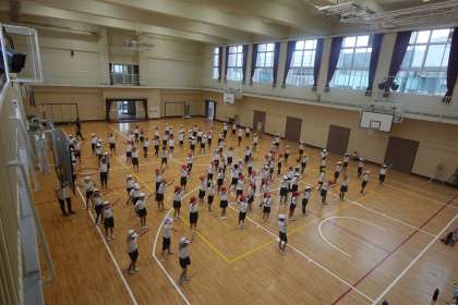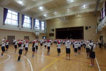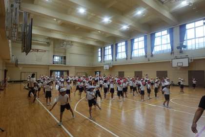 2年生が体育科の学習をしました。運動会に向けて、団体演技をしました。まずは、自信をもって踊ることができるように動きを覚えましょうね!!