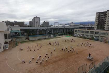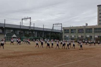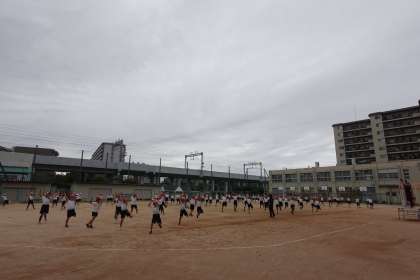 4年生が体育科の学習をしました。今日は雲が多く、比較的涼しかったです。隊形移動もしました。自分たちの場所を覚えていて、素早く動くことができましたね!!