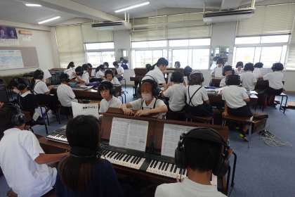 音楽科では、「キリマンジャロ」をオルガンで演奏しました。ヘッドホンをして自分の音だけ聴けるので、集中できますね!!