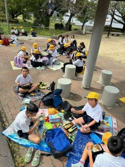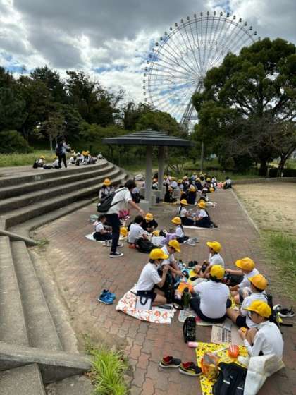 見学が終わった後は、天保山でお弁当タイムです。みんなそろって「いただきます!!」
