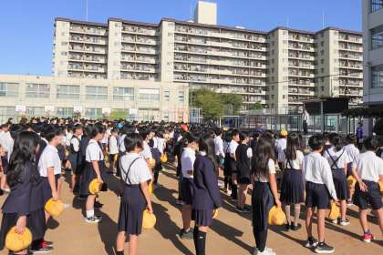 「今週の週目標は『すみずみまで掃除をしよう』です。運動会でたくさんの人が来校しますので、いつも以上にきれいに掃除をしましょう。」