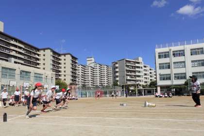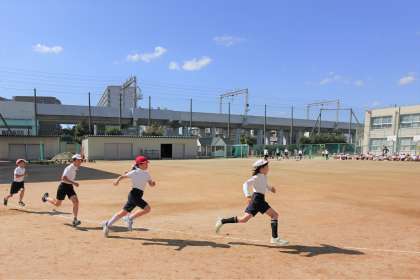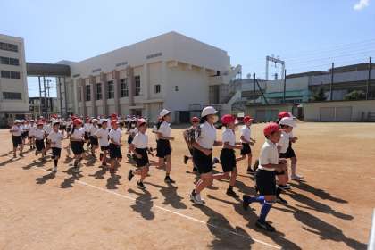4年生が体育科で個人走の学習をしました。4年生はトラックを半周強走ります。入退場も列を揃えるように意識しています。素晴らしい!!
