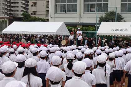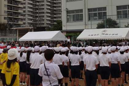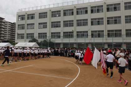 予定時刻の8:45に開会式が始まりました。子どもたちの力強い行進とことばです!!