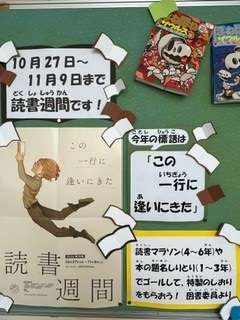 みんなが読書に親しむことができるように、司書の先生が掲示物にも工夫をしてくれています。みなさんはどんな本を読むのかな…?