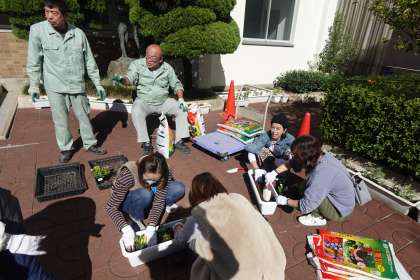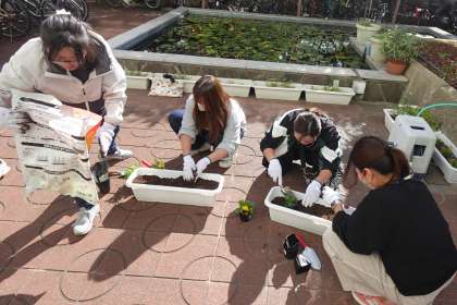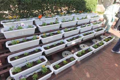PTAの緑化委員会の方々が、花の苗を植えてくださりました。特に説明も必要なく、きれいに植えてくれました。学校の玄関をきれいに彩ってくれています。ありがとうございました。