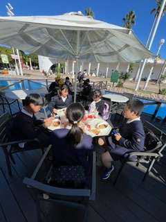 レストランを選び、?スクールチケットでお昼ご飯です。