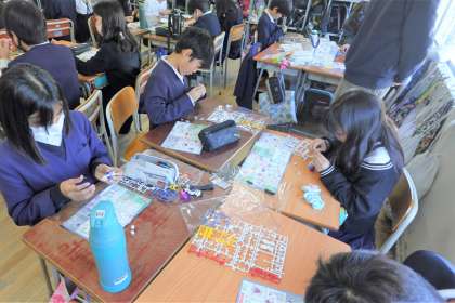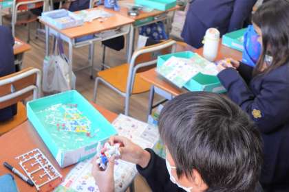 そのあと、ガンダムのプラモデルを実際に作りました。とても小さな部品なので、最後まで集中して組み立てました。休み時間にも製作に取り組む子どもも多く、たいへん意欲的に活動しました。