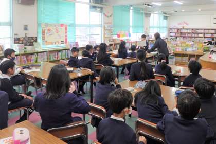 4年生が図書でビブリオバトルに取り組んでいました。「ビブリオバトル」は自分が読んでおもしろいと思った本を紹介し合い、みんなで読みたくなった本を投票します。いろいろな本を知ることができる取り組みの1つです