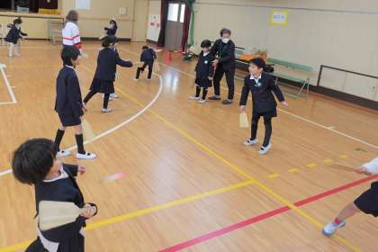 地域の方々に来ていただき、遊びを教えてもらいました。たてわり遊び等で遊んだことのある遊びでも、大人の方に教えてもらうと新しい遊び方を教えてもらえて楽しいですね!!