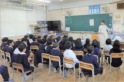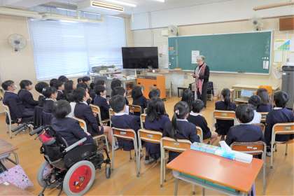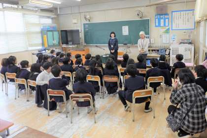 1・2年生でおはなし会をしました。『一寸法師』や『ひな鳥とねこ』などのお話の読み聞かせをしていただきました。日頃読まない本もあって、真剣に聞いていました。