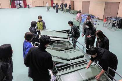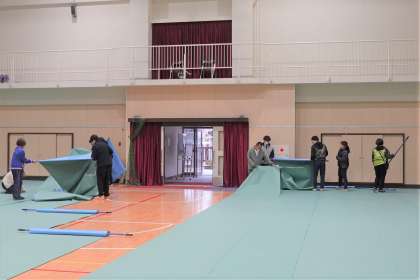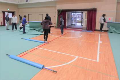 放課後、全教職員で学習発表会に向けた会場の準備をしました。シート張り、椅子出し等をしました。学習発表会本番に向けて、着々と準備が進んでいます!!