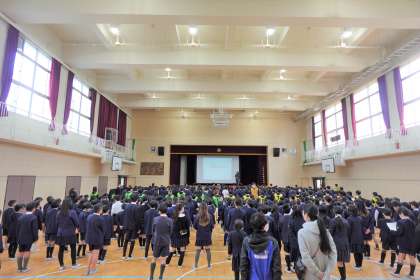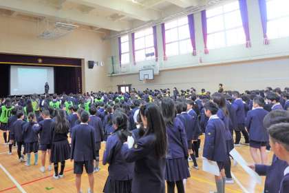 1〜5年生が講堂に集まりました。来週の「卒業を祝う会」に向けての練習です。1年間お世話になった6年生が喜んでくれるよう、みんなで練習をしました。来週の月曜日はいよいよ本番です。最後まで練習して上手に発表できるようにしましょうね!!