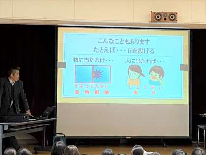 6年生が非行防止教室をしました。昨日の児童朝会に続いて西淀川警察署の方に来ていただきました。「ちょっとだけならいい」「ばれなければいい」など、そんなつもりはなくしたことが、非行につながっていくようです。日頃から先生や保護者の方の話を聞いて行動することも大切だそうです。日々意識して過ごしましょうね!!
