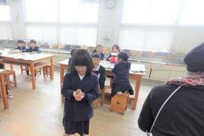 2年生が陶芸教室で作成したフクロウを受け取りました。全員分が窯で焼き上がりました。とても大切そうに、新聞紙に包んで、持って帰る準備をしました。