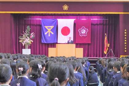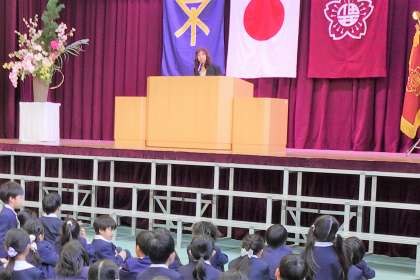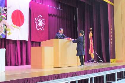 今年度の修了式がありました。5年生の児童が全児童の代表として終了証を受け取りました。