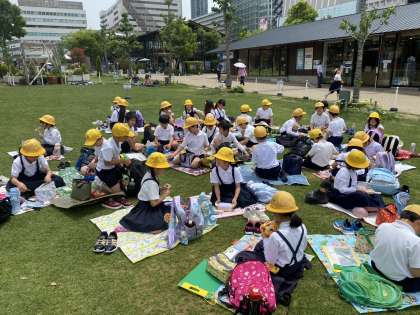高いところから見渡す市内の様子を見て、感心しながらメモをしていました。てんしばでは、気持ちよくおいしいお弁当をいただきました。