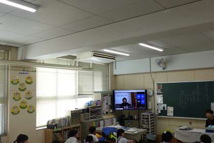 朝から鳴くセミの声が、ボリュームを増しています。児童朝会は、オンラインでの朝会で実施しています。