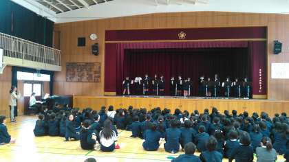2月23日(火)お昼休みに音楽クラブの発表会がありました。リコーダーと歌の発表で、きれいな音色を聞かせてくれました。