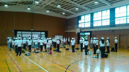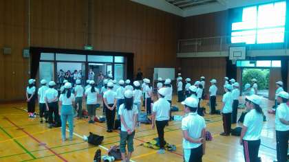 7月25日7:30〜講堂で出発式を行いました。緊張しているのか、「行ってきます」のあいさつに元気がありませんでした。これから、楽しい思い出をつくってほしいと思います。
