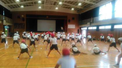 9月14日(水)雨の予報で心配していましたが、小雨がたまに降る程度で運動場の練習が予定通りできています。明日から全体練習が始まります。雨が降らないように願っています。写真は、昨日の4年生の練習の様子です。