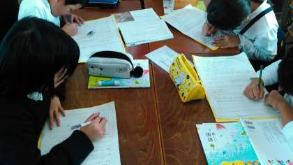 子どもたちは、自分の考えを班のメンバーに紹介し意見をもらいます。
