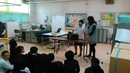 11月30日(水)先日、保健室で視力検査がありました。視力の大切さを理解するために?ボックスを使って中に入っているものをあてるゲームをしているところです。答えは、置時計でしたがわかるまでに数分かかりました。目で見ればすぐにわかりますが、触るだけでは難しいですね。